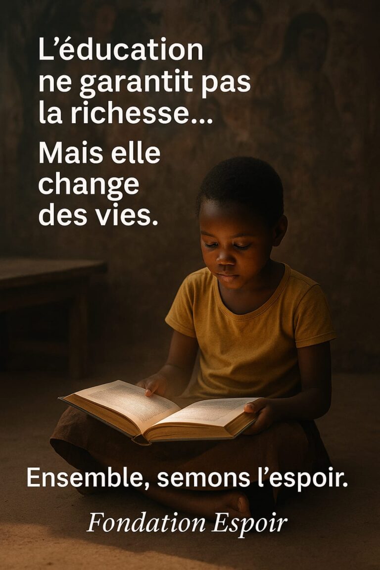 L’éducation n’est pas nécessaire pour gagner de l’argent, mais elle l’est pour changer des vies. Et c’est précisément ce que la Fondation Espoir se propose d’accomplir. C’est notre objectif.